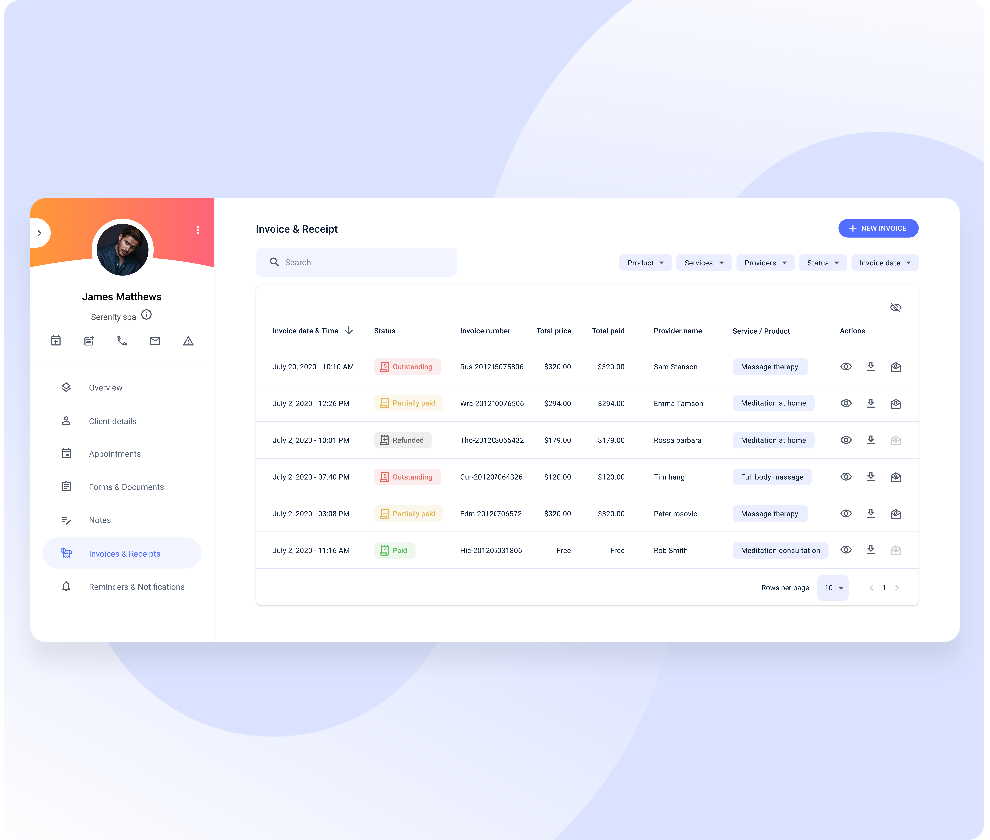 Easily identify pending forms and unpaid or partially paid payments directly from each client’s record. Plus, follow up with a click.